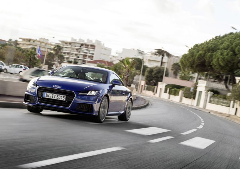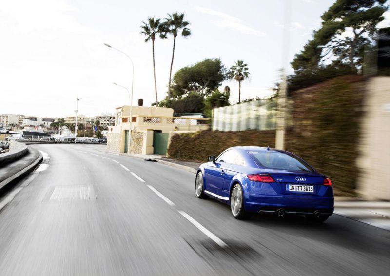 Audi TT Coupe (8S) 2.0 TFSI (230 Hp) quattro S tronic has a combined fuel consumption of 6.4-6.5 l/100 km urban fuel consumption of 8.3-8.4 l/100 km extra urban fuel consumption of 5.4-5.5 l/100 km Audi TT Coupe (8S) 2.0 TFSI (230 Hp) quattro S tronic accelerates from 0 to 100 km/h in 5.3 sec. The maximum speed is 250 km/h | 155 mph.